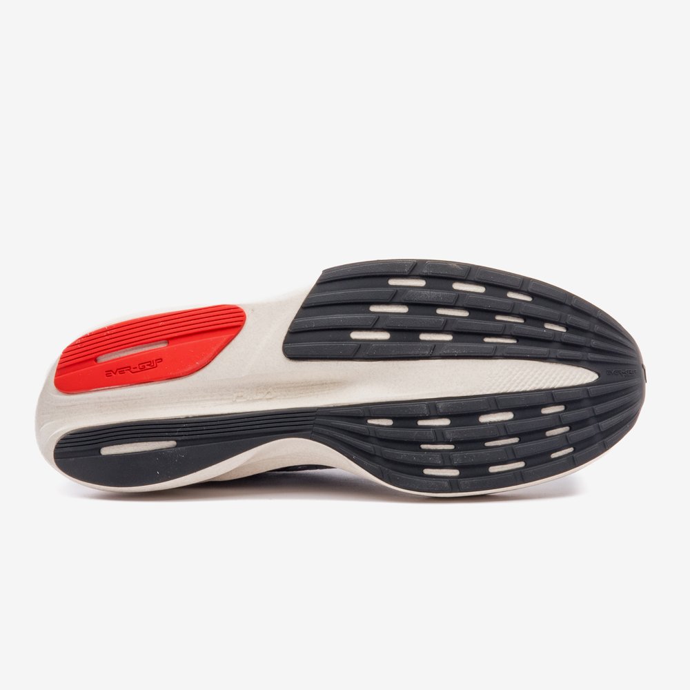 O solado em borracha com tecnologia EVER-GRIP garante tração e durabilidade em diferentes tipos de superfície, como asfalto e esteira.