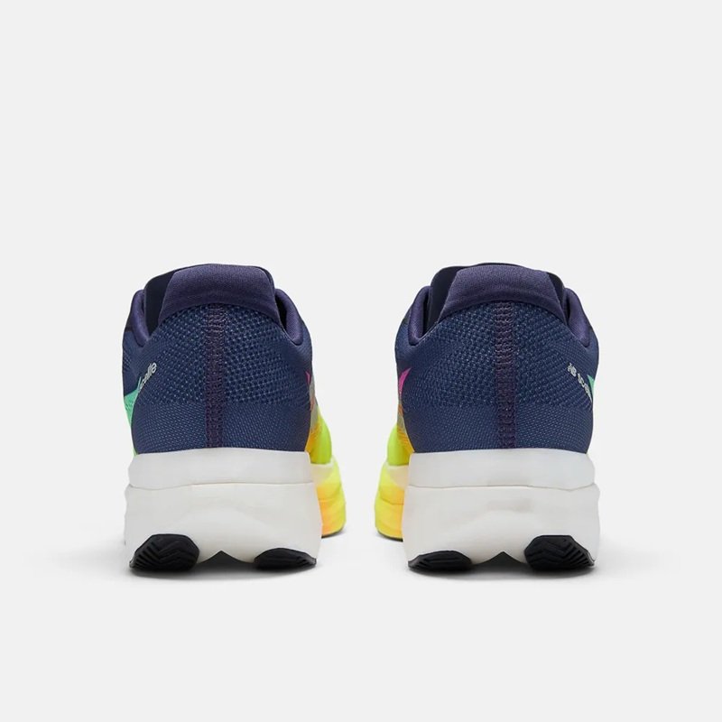 O solado do Tênis New Balance FuelCell SuperComp Elite v5 Masculino conta com borracha estrategicamente posicionada para garantir tração e durabilidade nos pontos de maior impacto, sem adicionar peso desnecessário ao conjunto.